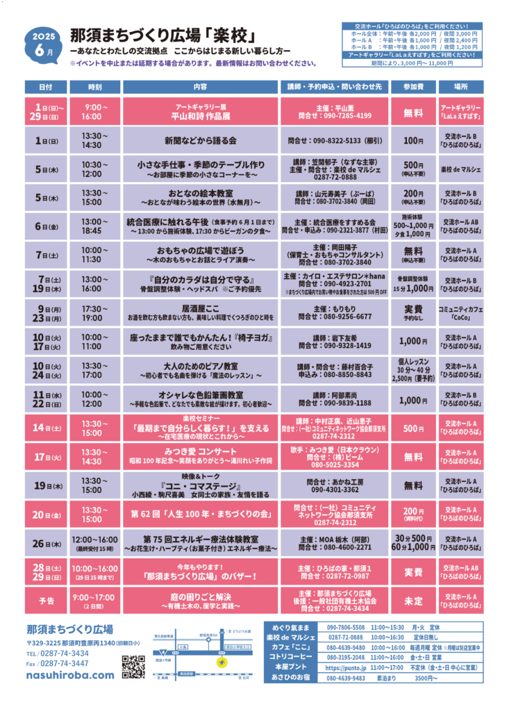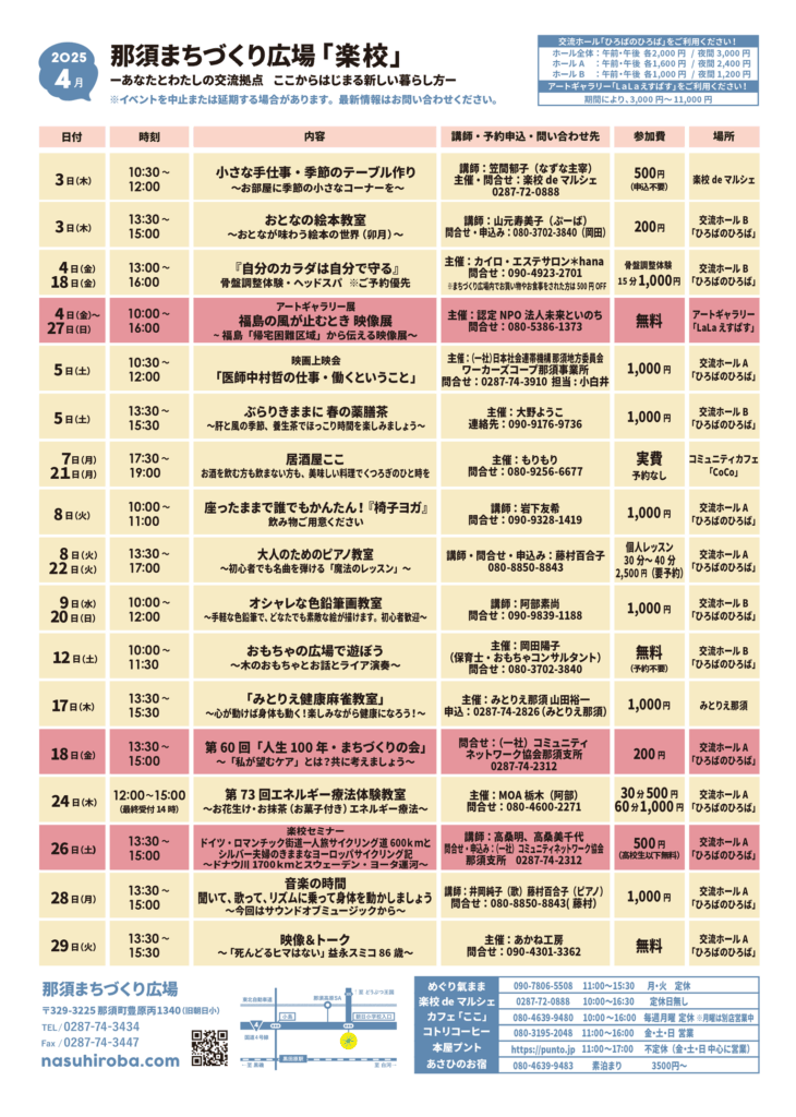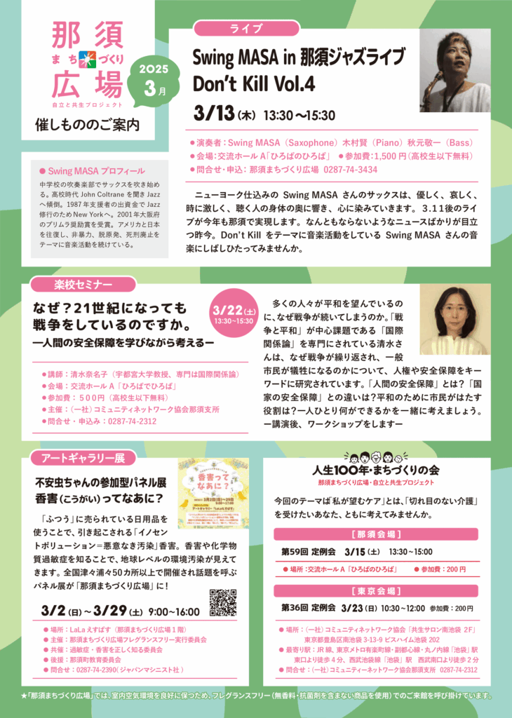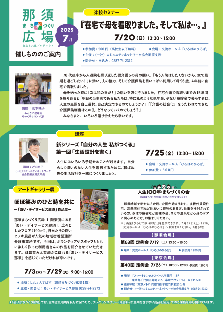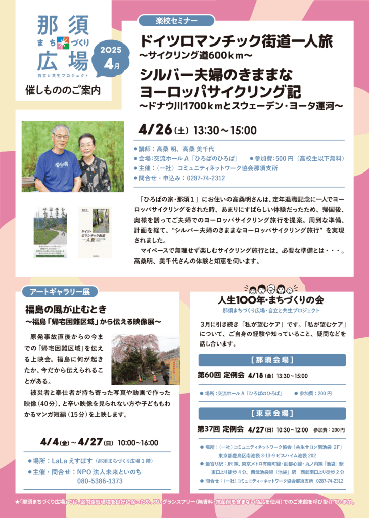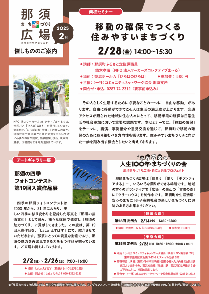 申込:(一社)コミュニティネットワーク協会那須支所 0287-74-2312