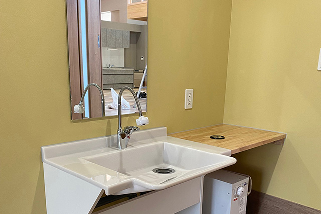 車椅子での洗面時に使いやすいように、細やかな工夫がされています。