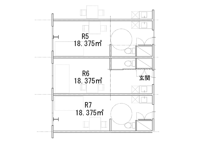 全室個室、トイレ、洗面台、クローゼット、緊急通報装置、エアコン、照明 専有面積 18.3㎡