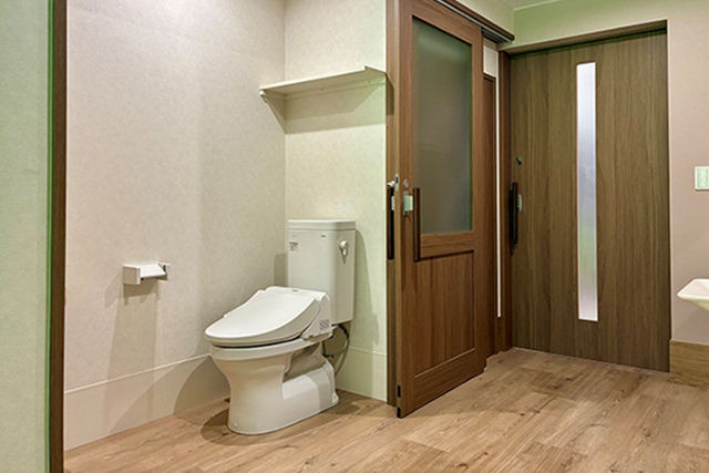 入口近くに収納があり、トイレのドアは全開放もできます。