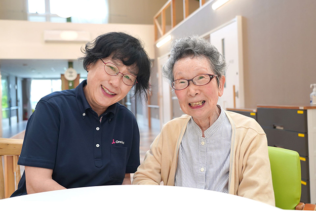 近隣の方がデイサービスをご利用されることも。リビングにお友だちを招いて楽しい語らいも。