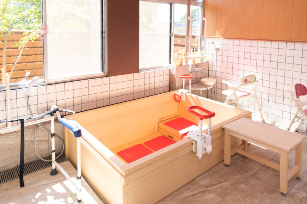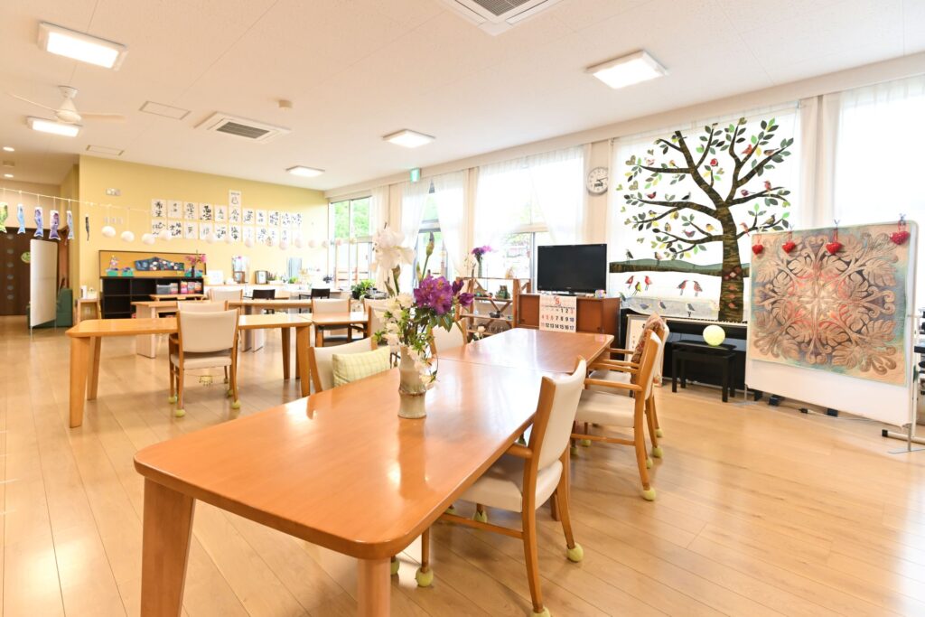 元プールを改装した190㎡の広々とした空間です。デイサービスを利用する仲間、ボランティアやスタッフとともに過ごします。