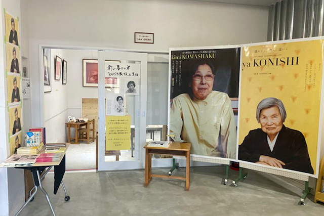 写真は小西綾。アートギャラリーで2022年1月、小西と駒尺喜美の軌跡で構成した「新しい暮らし方展」を開催。