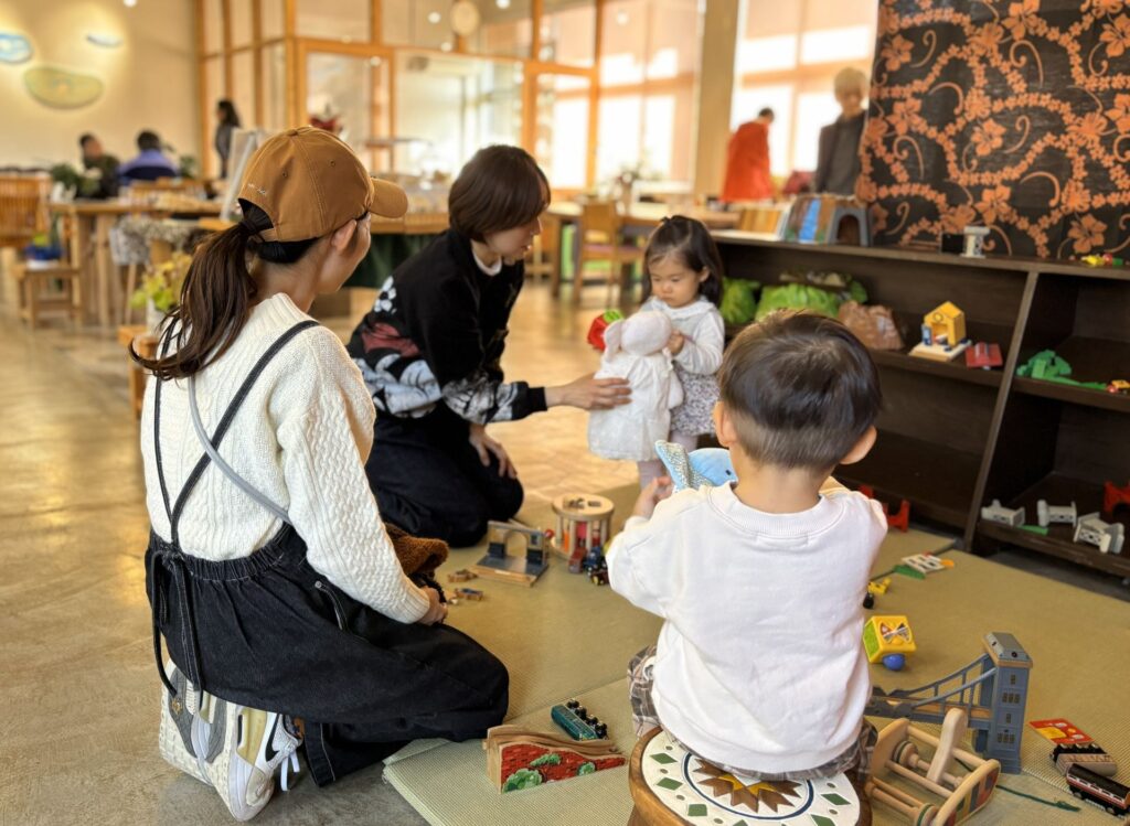 小さなお子さん連れの方もゆったり過ごせるように、キッズコーナーも用意。駄菓子の販売もしています。
